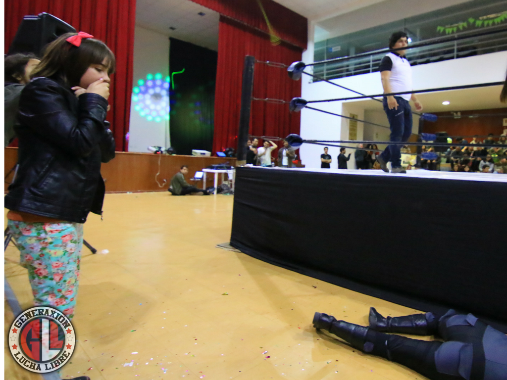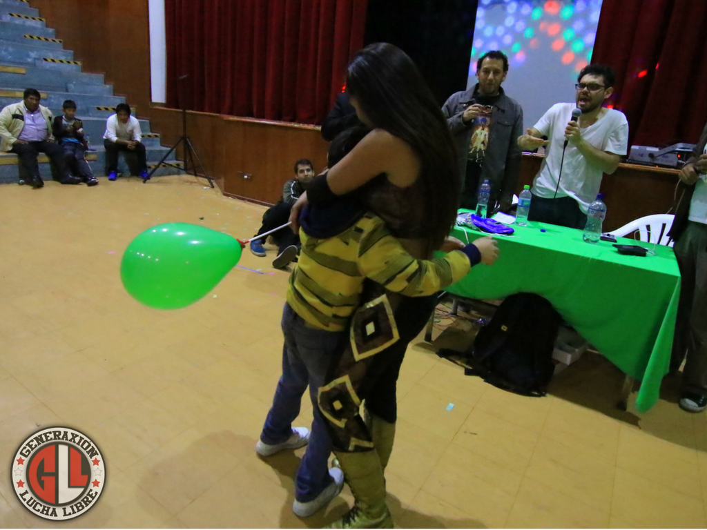 Isis abraza a un joven fan. Perdió la lucha, pero ganó el encuentro.